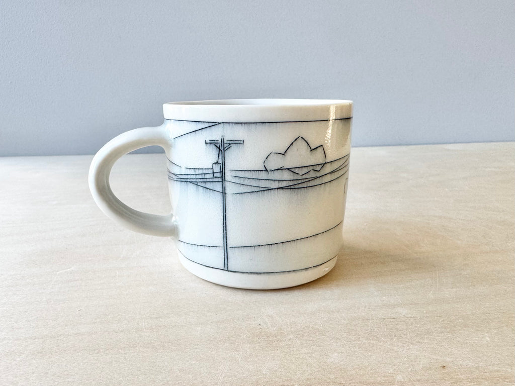A one-of-a-kind mug inlaid with imagery. Ready-to-ship mug holds approximately 16 ounces and is microwave & dishwasher safe!